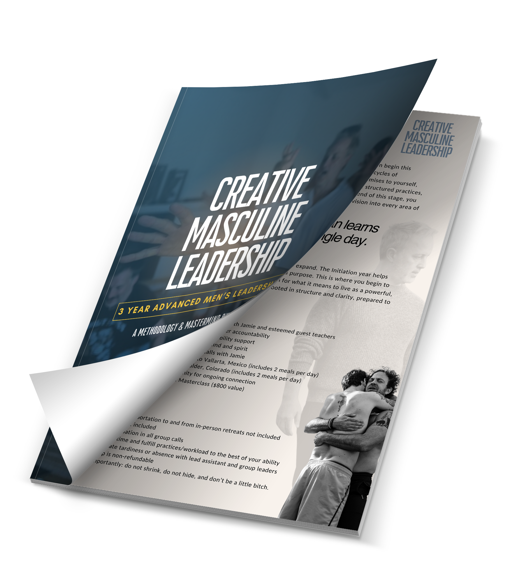 The Creative Masculine Leadership Program is a comprehensive nine-month immersion into the realms of confident leadership, conscious masculinity and sexuality, embodied integrity, purpose-mapping, and brotherhood.